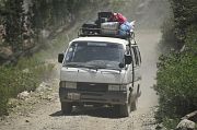 Was die Fülltechnik der Combis angeht, so ist die Rechnung einfach: Es gibt 14 bequeme Plätze, 17 die 3 ziemlich unbequemen Rücksitze eingenommen. Falls bei der Abfahrt erst 18 dieser 17 Plätze besetzt sind, so wartet der Fahrer noch einige Minuten (manchmal auch eine halbe Stunde) bis auch die restlichen 2 Plätze voll sind (Hühner, Kartoffelsäcke, Hund und Kleinkinder ausgenommen, das quiekende Schwein muss sowieso auf's Dach). Und sollte unterwegs noch jemand zusteigen wollen, so ist das ganz bestimmt kein Problem: Es findet sich fast immer irgendwo ein freies Eckchen.