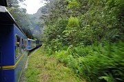Die Regeln für den Zug sind auch besonders praktisch: -Es ist nur ein Gepäckstück, Grösse Flughandgepäck von 5 kg (!) erlaubt. Das Gewicht wird zum Glück nicht kontrolliert, ich hätte sonst gut die Hälfte meiner Ausrüstung in Aguas Calientes lassen müssen. -Die Bahnhof-Absperrung und die Ticketkontrolle ist auch fast so wie am Flughafen. -Die Leute werden alle in einen Wagen gepfercht, im zweiten, fast leeren, Wagen macht es sich dann die Belegschaft gemütlich. (Alternativ zur 5 stündigen Zugreise gibt es eine günstigere 7-8 stündige abenteuerliche Busreise durch eine abwechslungsreiche Landschaft).