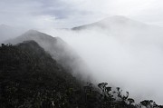 Nicht weit von Loja entfernt ist der Eingang zum oberen Teil des Parks, er wird Haupteingang genannt, hatte aber den schlechteren Service geboten als der Eingang bei Zamora: keine Transportmöglichkeit zur Hütte auf 2750 müM, schmudelige Cabañas und keine Küche da kein Guardaparque vor Ort. Von der Hütte konnte ich eine sehr schöne Tageswanderung durch Nebelwald und über einen abwechslungsreichen Grat zu einem Aussichtsgipfel machen. Wolken und Nebel begrenzten zwar die Sicht ein wenig, passten aber sehr gut zum moosigen Nebelwald.